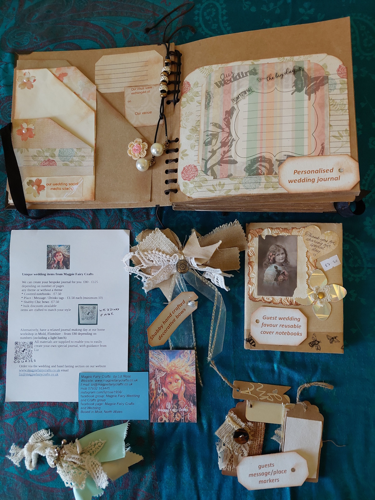 Note: I also offer tuition in journal making , listed under " courses " on the website. Or e mail me liz@magpiefairycrafts.co.uk for details. A great way to relax and have fun as part of your plans !